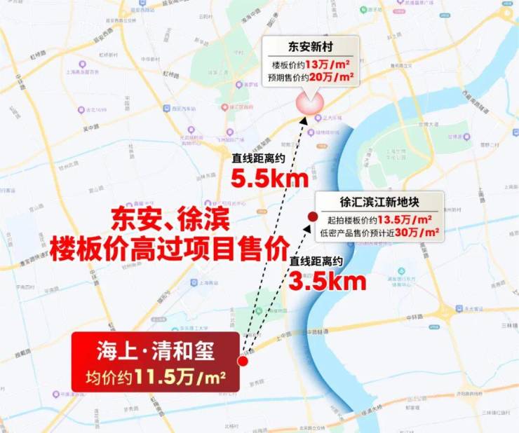 作为全球地王,东安项目楼板价已达约13万/㎡,远超海上·清和玺11.5万/㎡均价;据市场判断,该地块预期售价约20万/㎡。