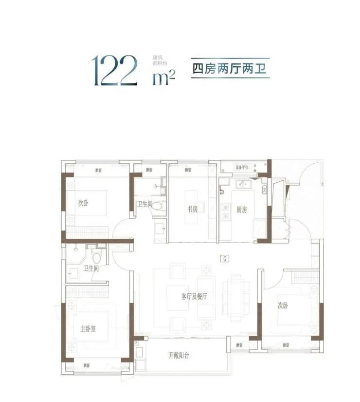 建面约148m²的宽境4房,拓宽空间尺度;大开间、进深短,通透采光;主卧独立卫浴,优雅随心的寝居感受。