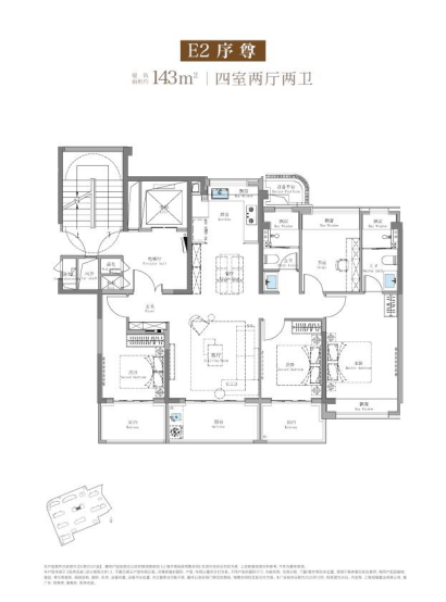 E2约143㎡南厅户型实得率亦达到惊人的92%!该户型格局适合多代同堂或多孩家庭,可兼顾不同年龄段成员的居住需求,均好性强。