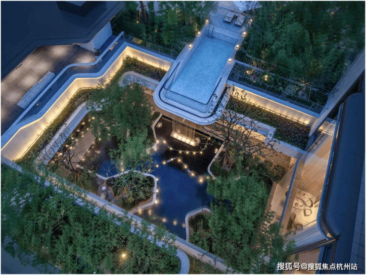 灵感源自新加坡 度假酒店的悬挑式戏水池,搭配4.3米飞瀑,创造别具一格的城市绿意的立体浮岛视觉奇观。
