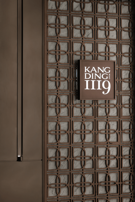 项目以海派新里弄风格为基调,建筑立面采用进口白世茂石材与仿古铜铝板,窗框转角经整体拉弯工艺处理,并植入手工雕琢的家族徽章,致敬康定路1119弄门牌的历史文脉。园林景观借鉴徐园造园理念,打造“九曲花街”垂直园林,堆坡高达3.5米,种植50年树龄的名贵树种,构建立体生态系统。