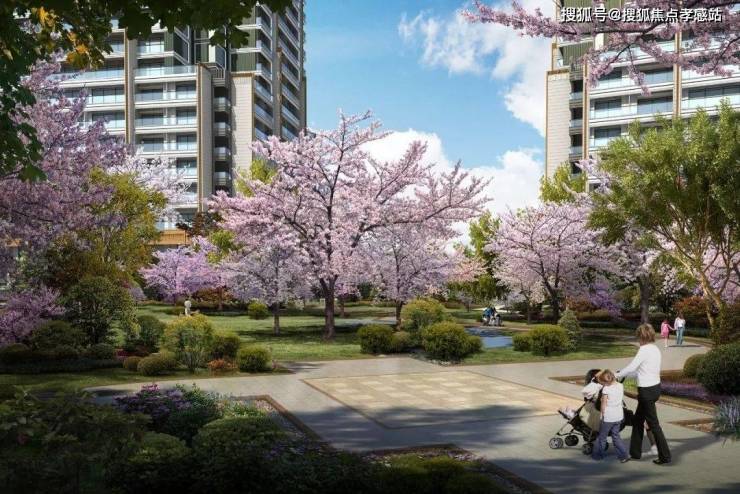 项目虽然不大,但在景观、会所上做得还是很用心的。打造了约13000㎡的新古典主义园林,中轴线上分布有礼宾大堂、中央水景、下沉式庭院,据说全冠移植了近100株日本原生樱花林。