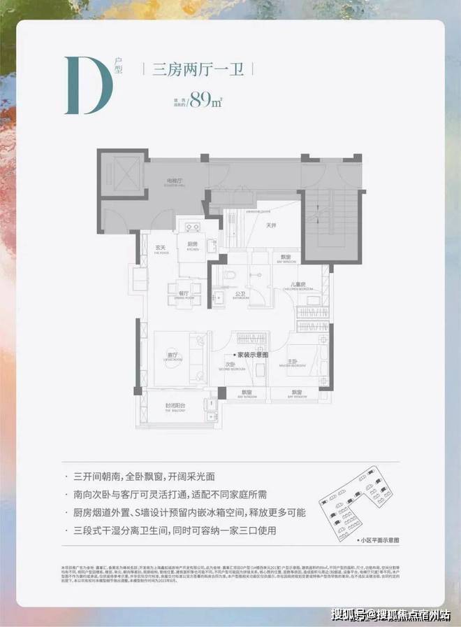 建面约89平 3房2厅1卫(中间户)