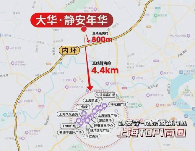 【大华·静安年华】项目可谓双王炸区位,直线800米贴脸静安内环,一脚油门就能杀进上海城市动脉,畅达全市核心节点;约4.4公里直插静安寺-南京西路心脏,直接把全上海顶流的繁华,变成你家的「日常生活」。