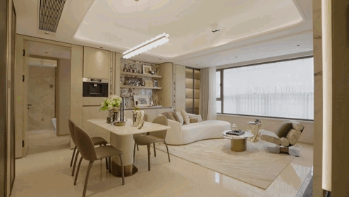全域奢石:从景观区的拼花地面,再到会所空间、大堂景墙、电梯厅、室内玄关,天然奢石贯穿全域,不仅让每一处空间都有“触手可及”的质感,更赋予产品“历久弥新”的恒久价值;