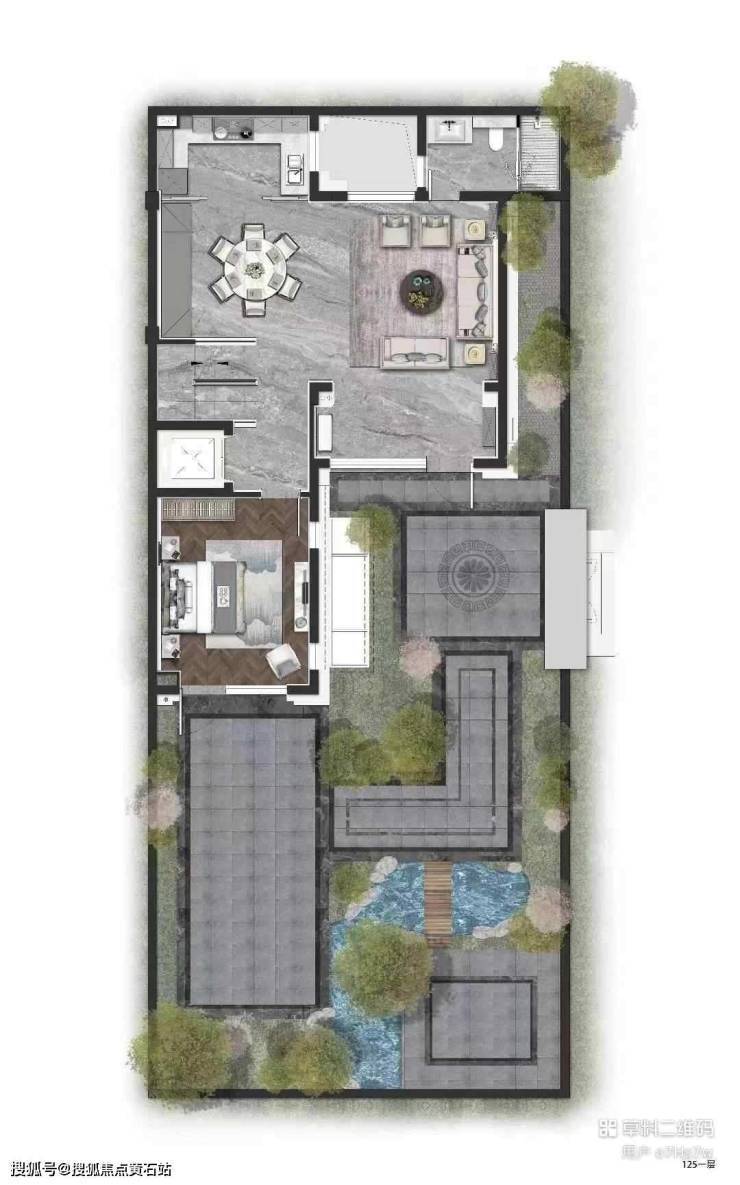 126平合院,实际使用面积约300-370平,花园面积约60平,参考总价545-635万;