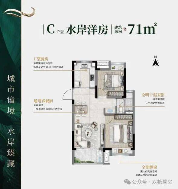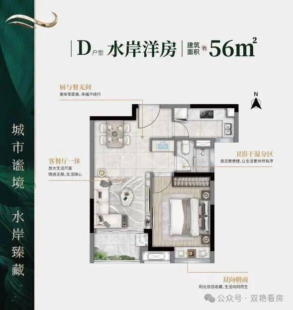 建筑面积约122㎡的水岸联排别墅和56-70-93-127㎡水岸洋房产品搭配,满足不同业主居住体验需求。其中E户型和F户型水岸洋房更是采用大牌精装交付,