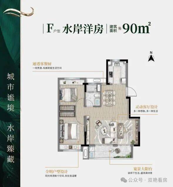 本案采用双景观轴线设计,让业主尊享臻境归家礼遇和隐归自然体验,悦享惬意生活。产品方面,建筑面积约122㎡的水岸联排别墅和56-70-93-127㎡水岸洋房产品搭配,满足不同业主居住体验需求。其中E户型和F户型水岸洋房更是采用大牌精装交付,赋能品质生活。