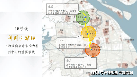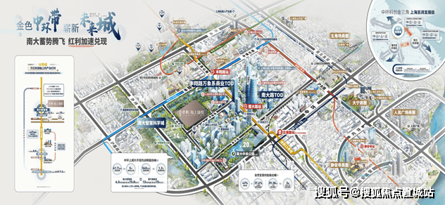 ◐ 从张江到漕河泾到南大智慧城,中环上的黄金三角关系呈现出了不可复制的“黄金中环科创带”,南大智慧城在空间格局上占据了北上海门户的科创中心。