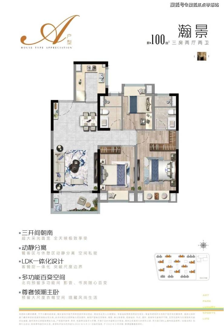 上实·望海售楼处热线☎️☎️:400-9966-940✔️✔️ 建面约100㎡3房A户型▼