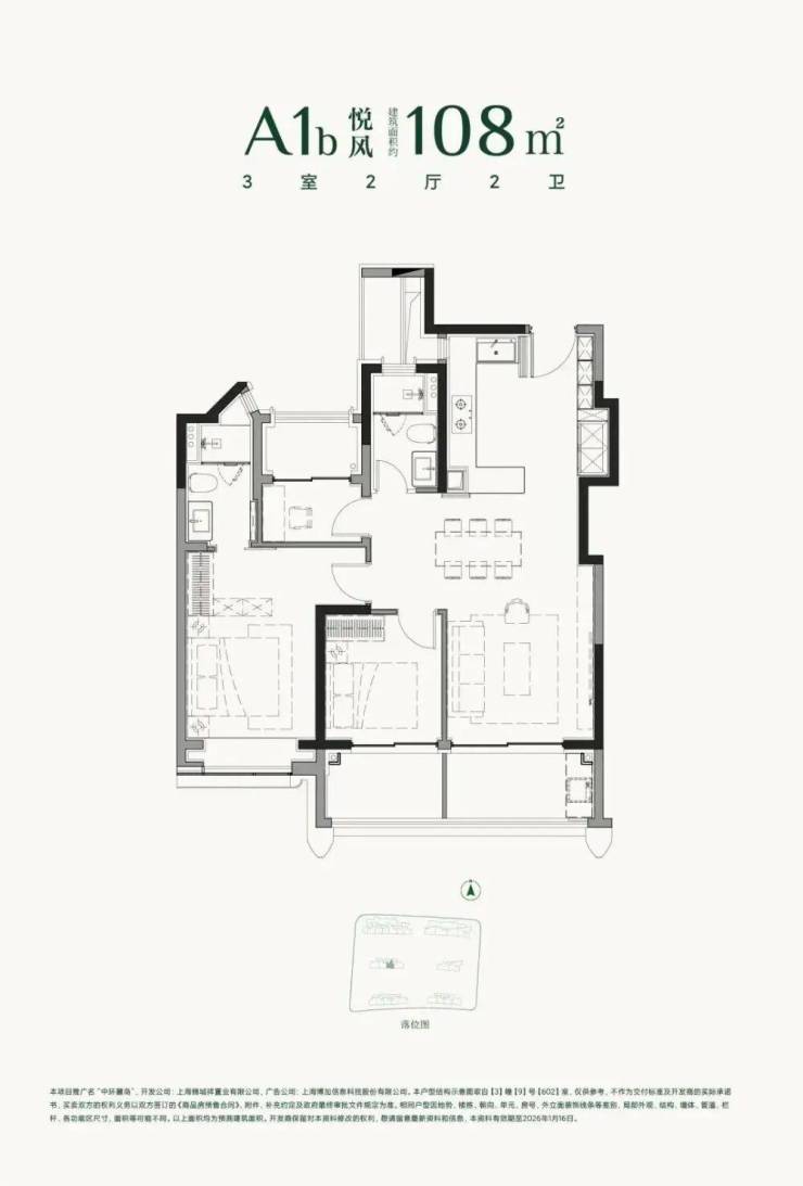 建面约108㎡3房2厅2卫