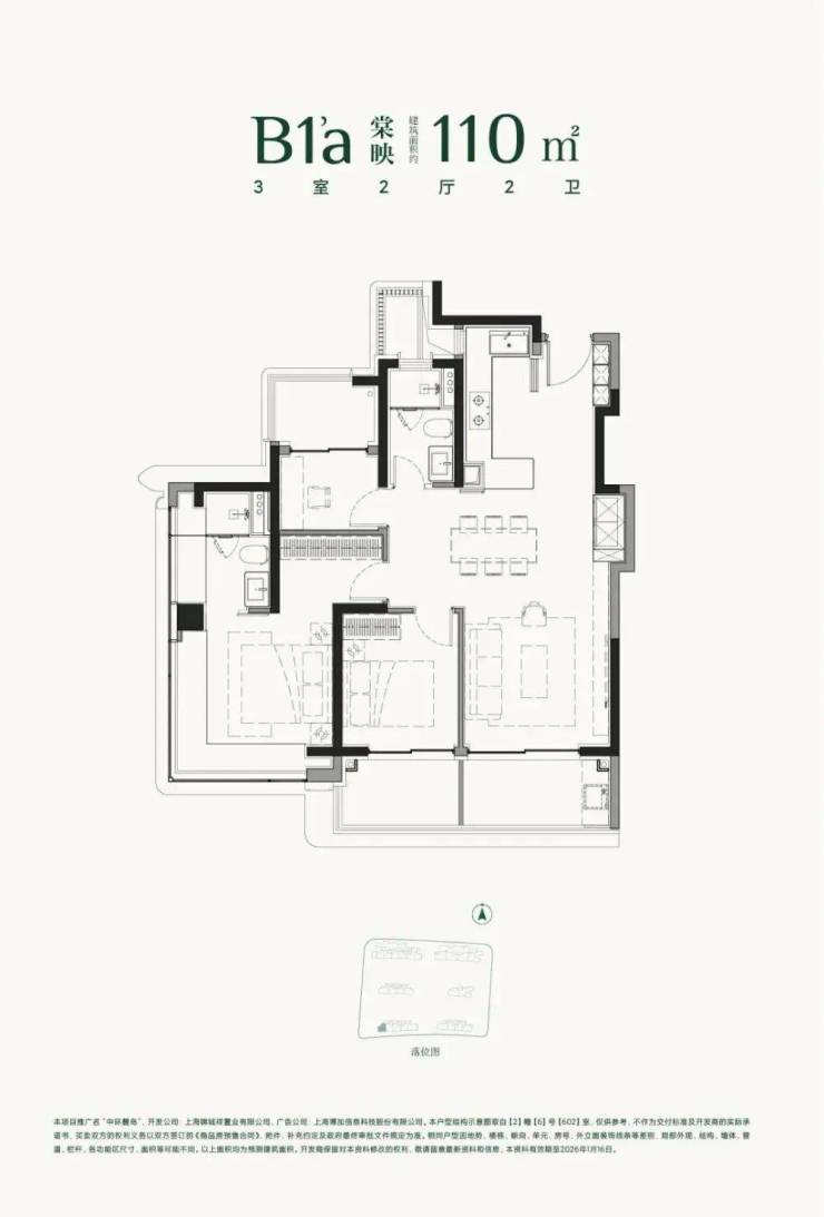 建面约110㎡3房2厅2卫