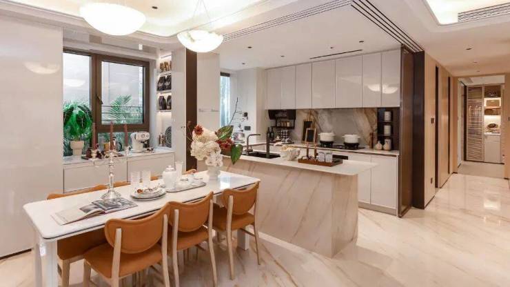 配置岛台的独立餐厅,加上具备单独的采光大尺度飘窗,这不仅是简单的“采光升级+功能升级”,更是直接把自然风景与生活仪式感,直接搬上了餐桌。