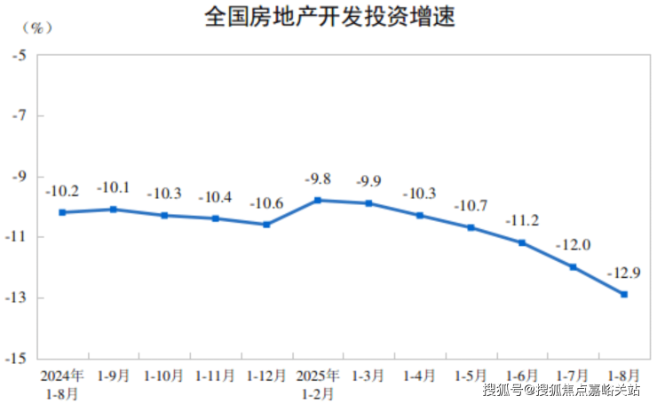 具体来看,房地产开发投资增速方面,累计同比跌幅继续扩大。数据显示,1-8月份全国房地产开发投资60309亿元,同比下降12.9%;其中,住宅投资46382亿元,下降11.9%。