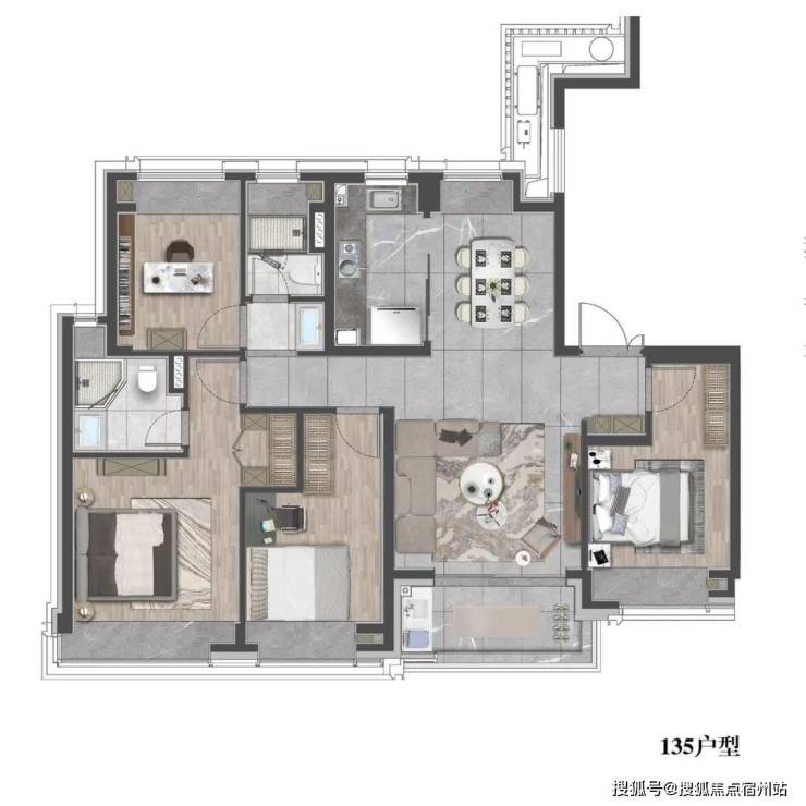 三进:尊享水苑-入户门庭仪式水景;下沉会所-私享品质生活;社区会客厅(约20m²)-度假式摩登私享泛会所。