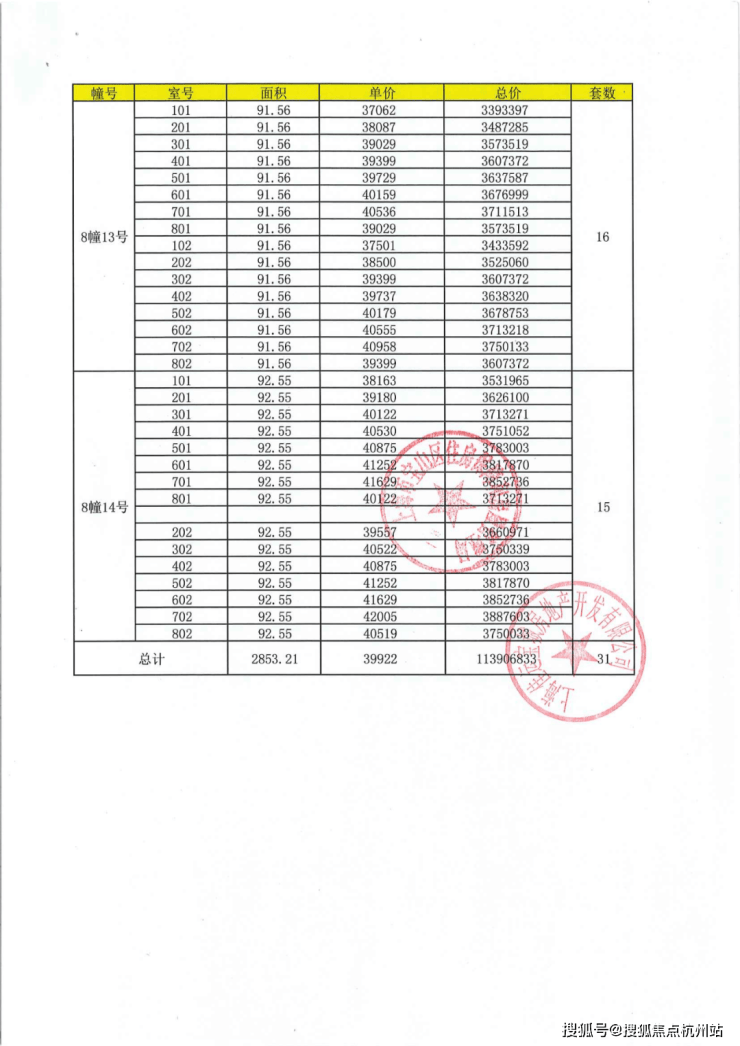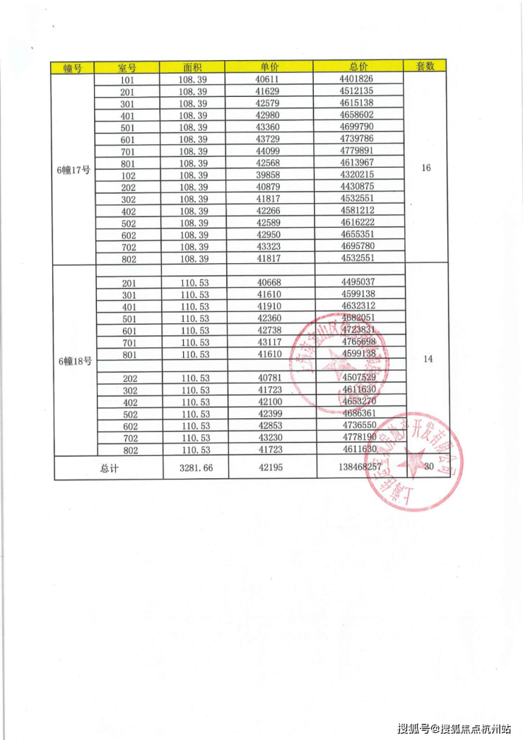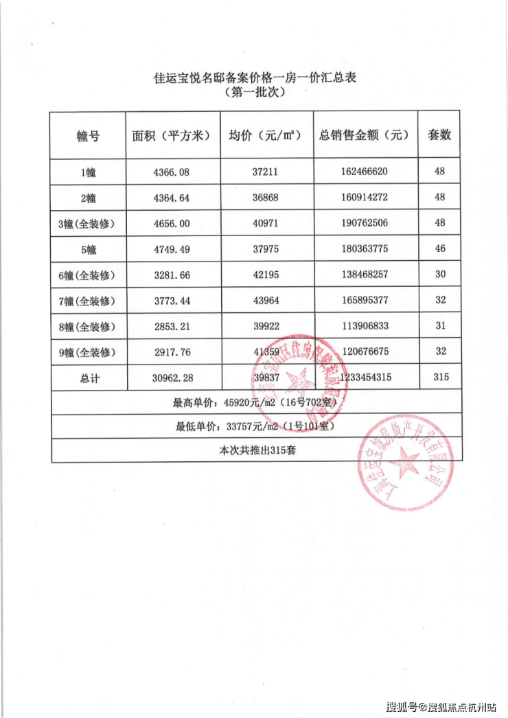 上期一房一价表: