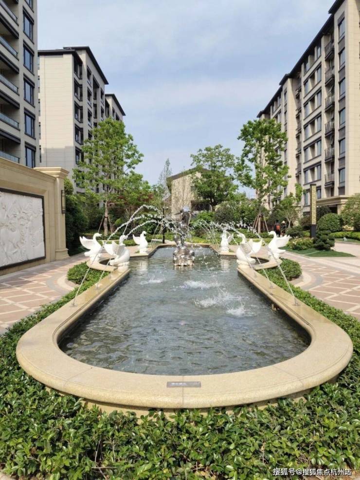 小区景观以府院规制布局轴线对称式花园,多层次园林、约196米超长景观轴线对称庄严。更吸睛的是一道喷泉水景引人注目,背景墙浮雕,水韵与光影交织,更添几分雅韵。一群造景天鹅仿佛在水边戏水,三两只海豚仿佛从水中跃起。走到这里,脚步都不由自主的慢下来,听一听水滴落的声音,看看如清泉一般的水,伴着阳光下水闪耀的光泽,真的很治愈。