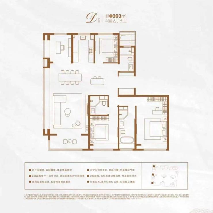 该户型集LDBK一体化、玄关入户、动静分区设计、U型厨房、双卧飘窗、强大收纳等多重优势于一体,在功能性与舒适度上几乎都做到了极致!