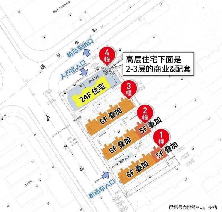 高层住宅下面是2-3层的商业&配套。