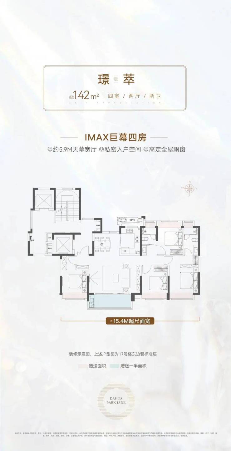 真正一步到位的改善型4房产品,大横厅的设计,四开间朝南+大横厅,约15.4米的南向面宽堪比别墅。