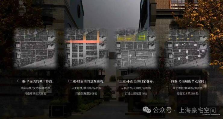 贯彻“中意西景、中正西融”景观理念,以中式花园隐居哲学核心,传承中式里弄记忆、融合西式花园情调。提取场地四种建筑和场域风格特征,营造中西风貌交叠的别墅花园景观,演绎当代海派风情里弄人居。