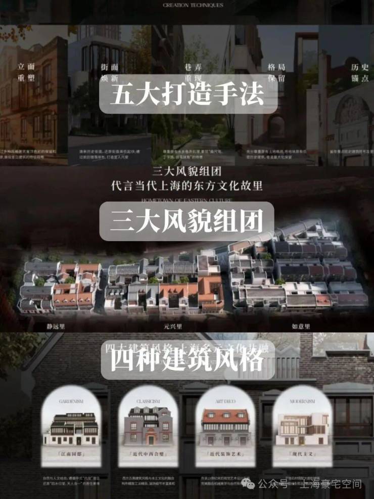 坐落于荟萃海派先进建筑样式的“历史豪宅区”:这里毗邻中西文化的枢纽之地,建筑呈现中西文化融合、多元荟萃的风格,涵盖公馆、里弄的形态特征,糅合传统江南园邸、近代公馆等多元风格,呈现海纳百川的特点。