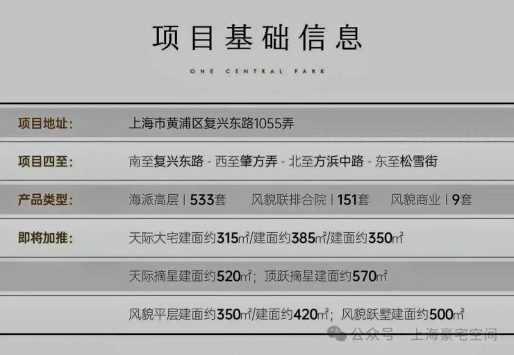 ·基本信息:项目总建筑面积约23万方,由高层住宅、改建保留的联排别墅、合院别墅及配套用房组成。风貌别墅整体体量为151套,首开38套,分3个组团,均为纯合院风貌。