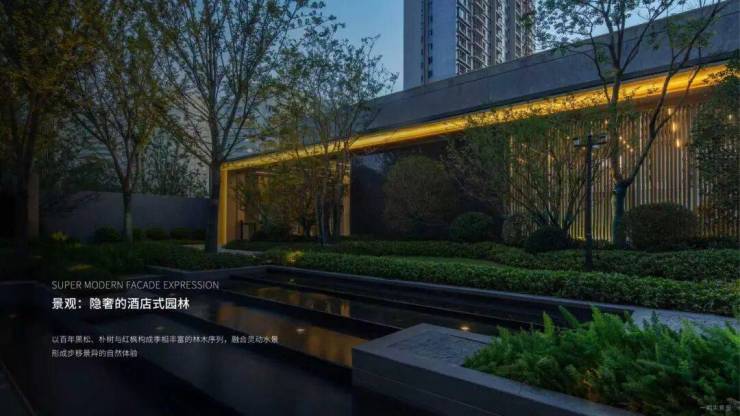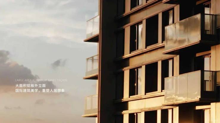 现代典雅立面,灰色搭配香槟金的色调,彰显不同建筑审美,外立面为品质铝板+玻璃幕墙,局部干挂石材和保温一体板,通过数控切割、精度弯弧、手工焊接、打磨抛光、七重清洁、烘干喷漆、高温定型等过十余步精细工艺,是高端住宅里 高于行业标准体系 的立面铝材。