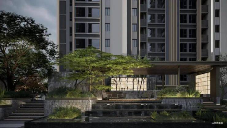 据悉,项目入口门楼延续中式的端庄大气,以传统的坡屋顶展现东方的韵味,简化繁琐的细节,凝练出符号性的语言,结合两侧景墙呈现开敞的姿态,体现项目的昭示性与尊贵感,目前已实景呈现。