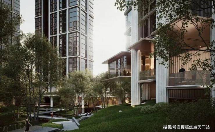 “回归之境”以3500㎡下沉水苑为核心,汇聚会客、泳池、茶室等多功能空间,形成仪式感十足的社区舞台!