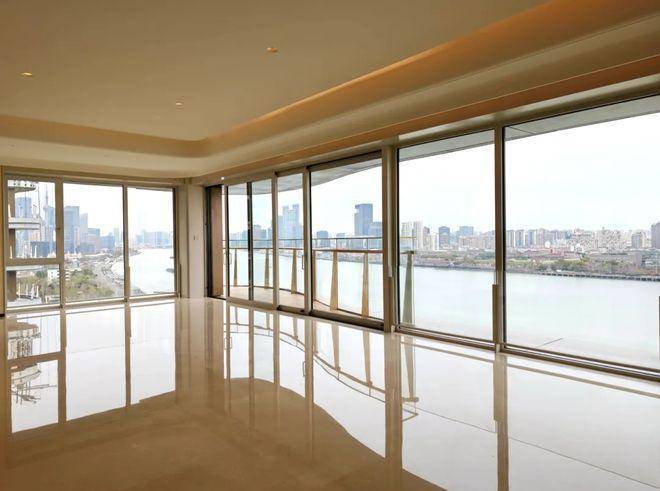 建面约 388㎡ 四房三厅五卫项目一线滨江终极大宅,3.6 米奢阔层高,一梯一户私属入户,尊享独立电梯厅归家动线;四开间朝南,南向面宽超 22 米,9.2 米殿堂级横厅搭配 270° 环幕全景落地窗,一线江景一览无余;双主卧豪华套房设计,主卧配备 270° 观景飘窗、男女双衣帽间、四件套独立卫浴与书房,全屋全套房布局,兼顾私密性与尊崇感;中西双厨设计,搭配独立私宴厅、家政间,可满足高端家庭的社交宴请需求,总价约 6000-7000 万。