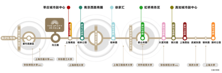 交通方面:项目位于15号线元江路地铁上盖,紧邻莲花南路,周边2公里内有地铁5号线颛桥站,虹梅南路高架、沪金高速、申嘉湖高速等交通干道。