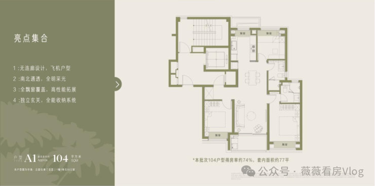 作为滨江核心商务区的稀缺三房产品,104㎡户型以极致的空间利用率,满足三口之家的全周期居住需求。纯板楼无连廊设计,规避了传统户型的采光死角与隐私泄露问题,实现全屋南北通透。独立玄关衔接专属储藏空间,打造高效收纳体系,让居家空间告别杂乱。