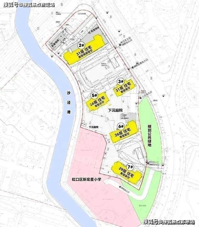 地块除了紧邻瑞虹的商业,南侧是新宏星小学,西南侧是招商云玺.