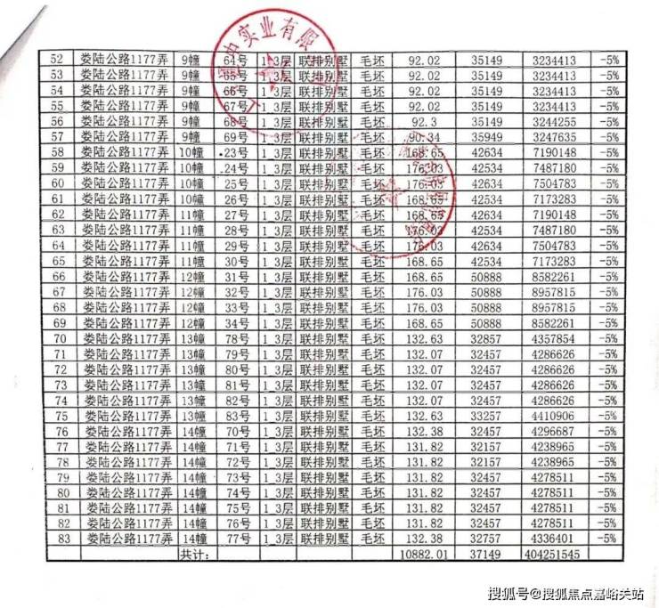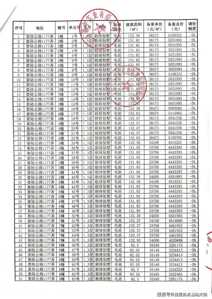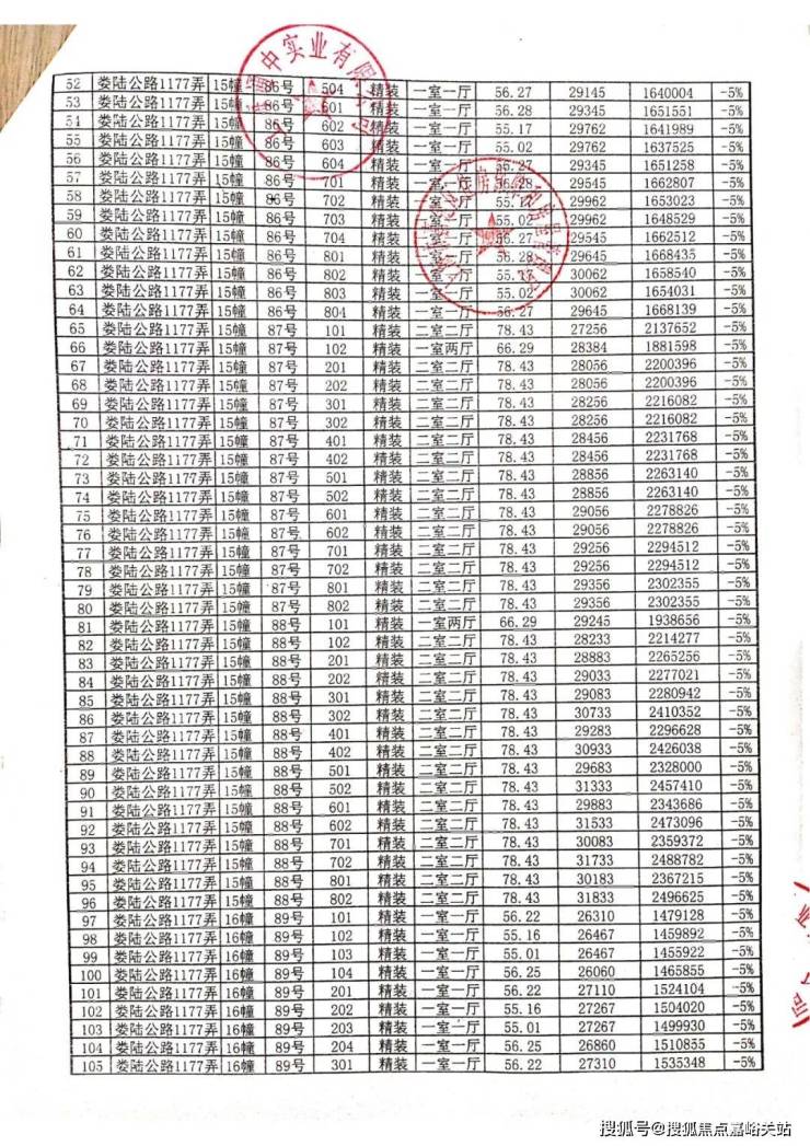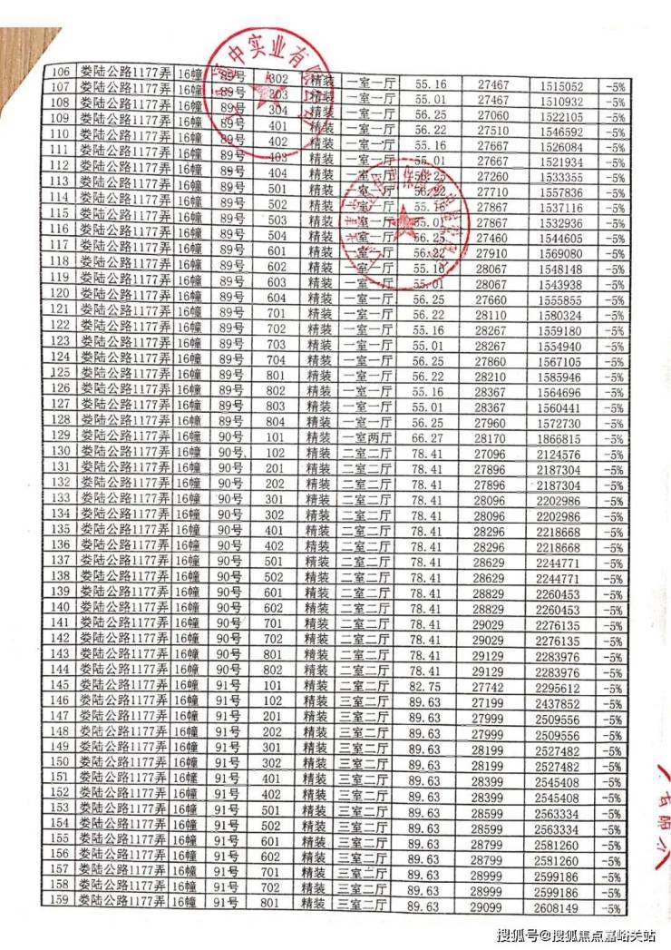 一房一价表: