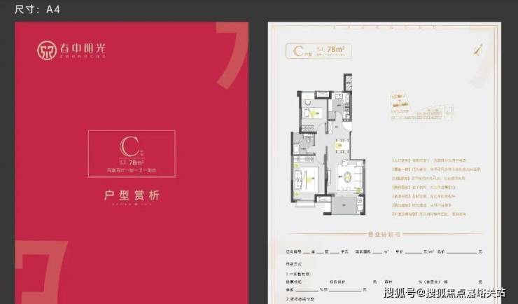 建面约78㎡2房1卫户型,做到了双开间朝南+南北通透+卧室带飘窗+动静分离,功能区划分、动线都非常清晰。