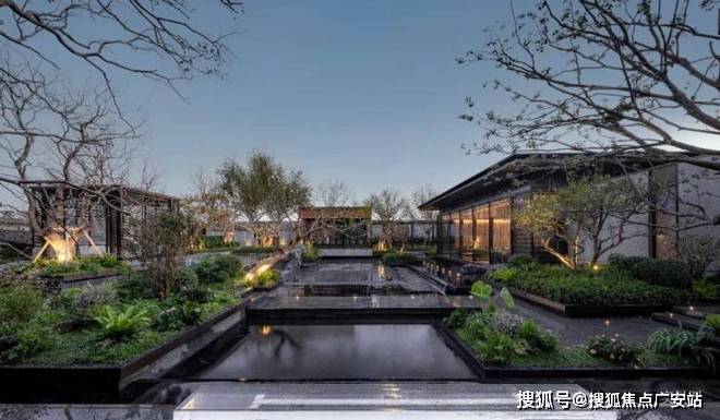 「碧波归苑」三重跌水设计,水畔预留林下会客空间及亲水平台,供业主停留、驻足、交谈。