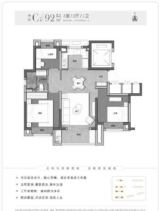 整套户型实用性和舒适度双佳,可满足小家庭一步到位、N年不换房的需求。