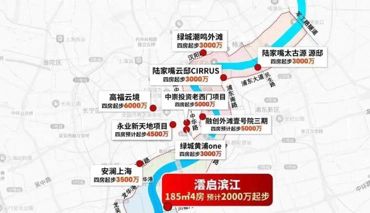 从预算入手,我统计了2000-2500万能享180㎡左右尺度的选项,基本都属于次一级地段,比如苏河湾后面的大宁,北外滩后面的四川北路,前滩后面的三林,陆家嘴后面的新杨思等。对于追求稳妥资产配置的客户来说,这样的地段显然是不够的!