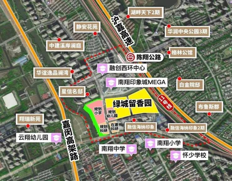 2.项目北侧紧邻超大商业综合体MEGA印象城、楼下就有规划的小学,当之无愧南翔的地王。
