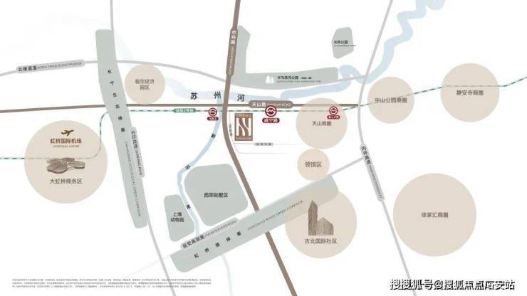 【地铁2号线】直线距离威宁路站约800m,北新泾站约300m,东向2站中山公园,4站静安寺,6站人广,9站陆家嘴,直抵浦东国际机场,西向3站虹桥2号航站楼,4站虹桥火车站,是上海名副其实的国际线。