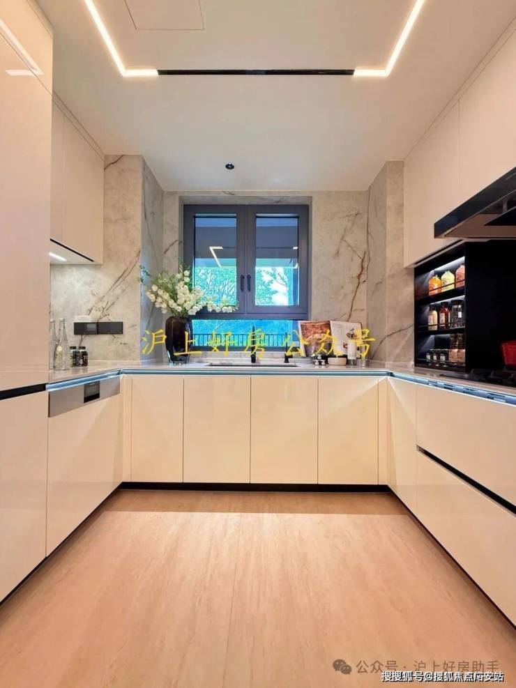 超一线装标,全部给足:厨房间博世双开门冰箱、凉霸、嘉格纳四件套、弗兰卡水槽。柜体采用的是和19.5万的绿城同款柜体——威乃达,还有弗兰卡的大单槽、旭格的门窗。卫浴采用唯宝、高仪等品牌.......投入成本非常高。
