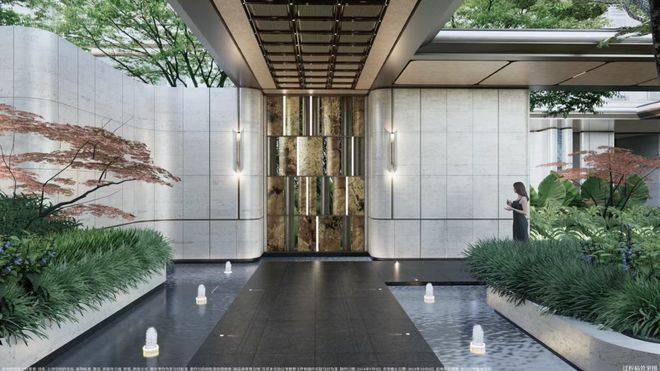以19世纪“丁香花园”为灵感,打造“翡色五境”,包括双下沉庭院、中央会客花园(含2000㎡无边泳池、3D高尔夫)、东湖光厅(倒映建筑光影)、清和艺廊(艺术连廊)、汇金水院(叠水景观)。