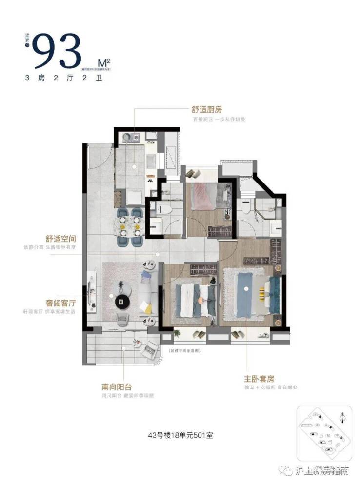 建面约93㎡3房2厅2卫