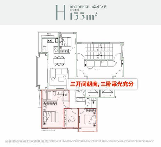 市面上多数4房户型常出现3-4个房间扎堆的问题,次卫的洗漱声、交谈声轻易传遍相邻房间,私密性与居住静谧感打折扣。