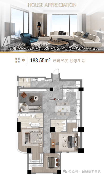 项目采用Art Deco风格,外立面以浅金色铝板与大面玻璃幕墙结合,窗墙比达35%,部分户型采用270°环幕设计,10米巨幕客厅尽揽城市景观。社区内设恒温泳池、健身中心、私人宴会厅等高端会所,提供米其林主厨定制、私人管家服务。周边6条地铁线环绕,自驾10分钟直达外滩,40分钟抵浦东国际机场,交通极为便捷。