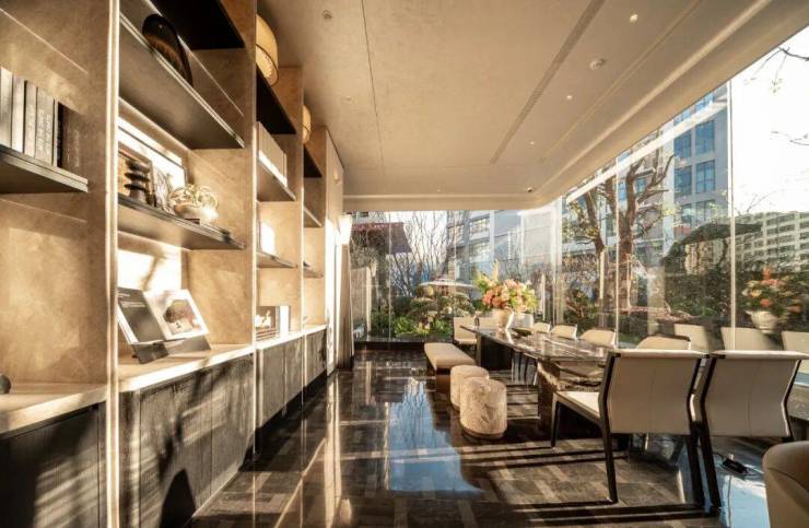 【思韵书院】则位于5号楼架空层,是一处沉淀思想之静的书吧,配备宇宙黑金大理石阅读桌,星光微烁,如蕴苍穹;窗外是无界风景,窗内是一个时代的静思。