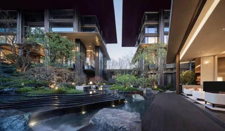 山川溪谷与休憩架空层空间共汇,于庭园深度,打造一处可游、可观、可赏的自然谧境。