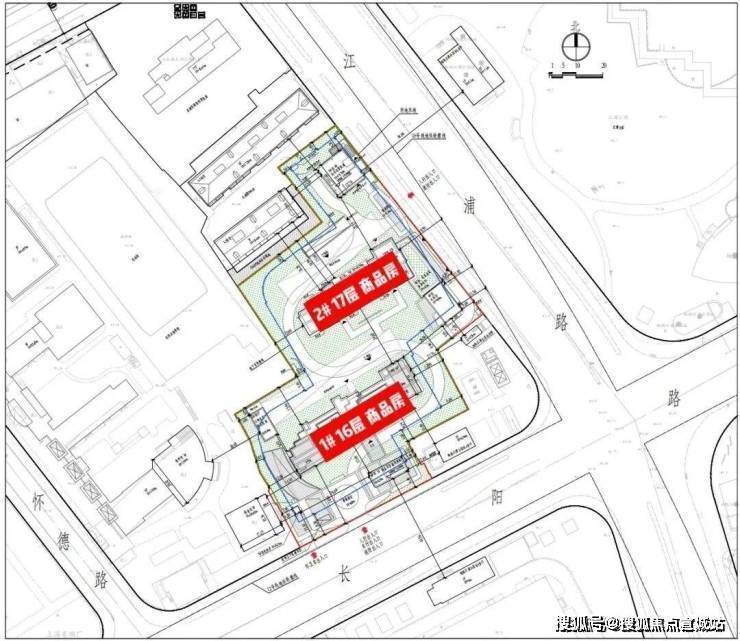 人行出入口、车行出入口、消防出入口,设置在南侧长阳路上,并设置1个临时上下客停车位;西侧江浦路设置人行出入口兼顾消防出入口
