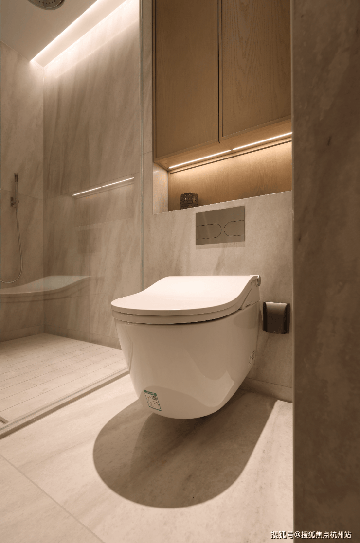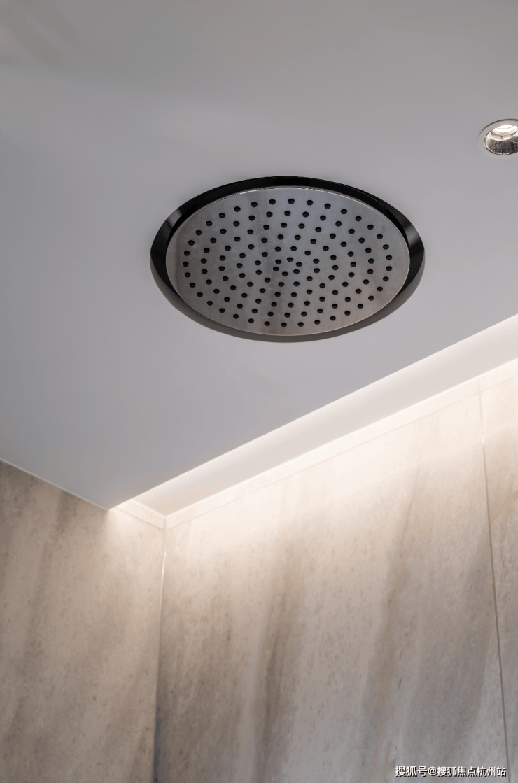 主卫淋浴花洒采用了德国当代 ,并做了别具一格的嵌入式设计。花洒的底面与吊顶齐平,视觉与空间感更好。